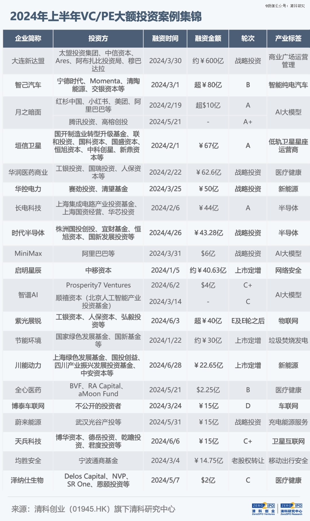 2024年上半年VC/PE大額投資案例集錦