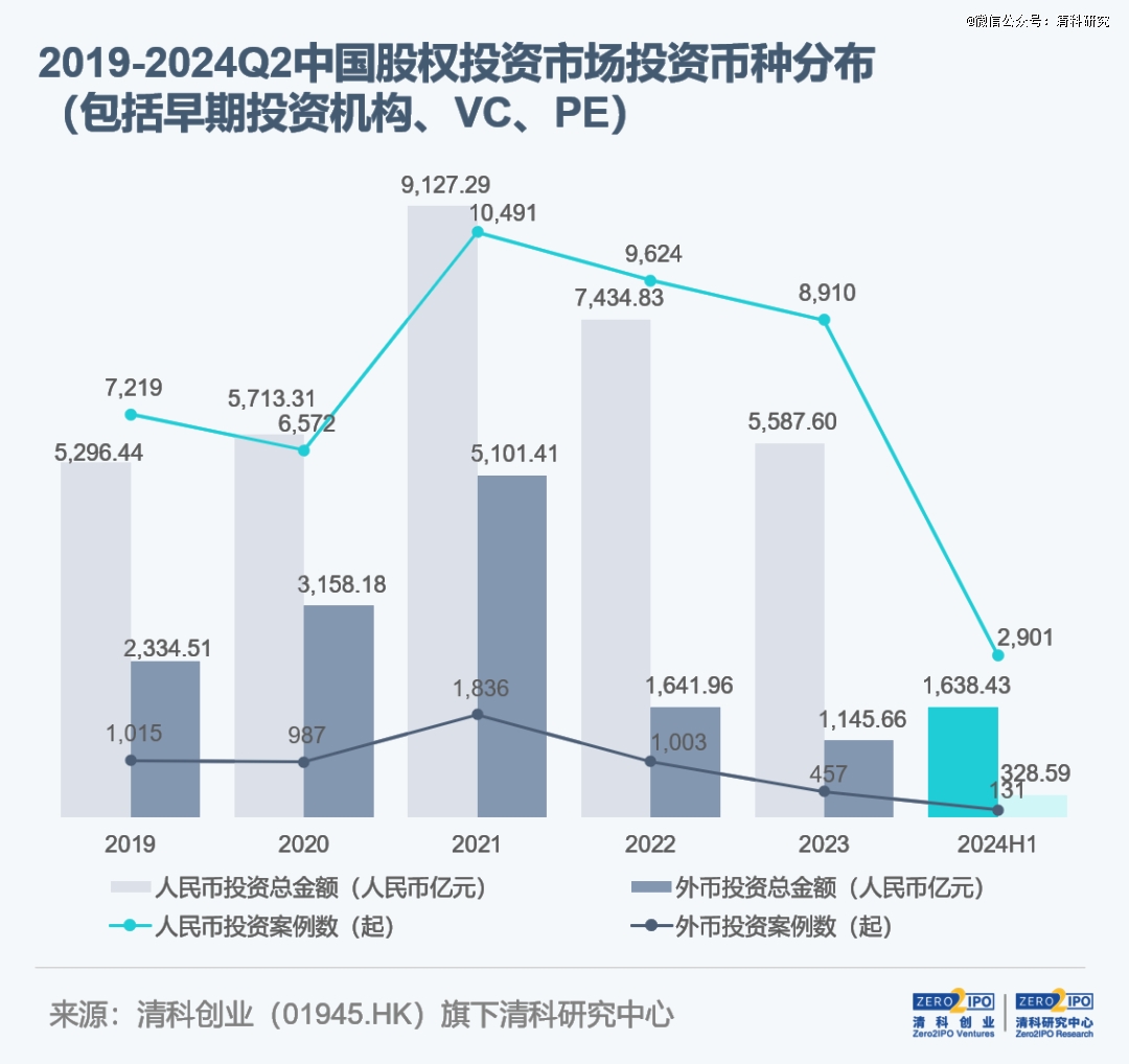人民幣投資市場主導(dǎo)地位顯著,投資案例數(shù)和金額占比持續(xù)上升