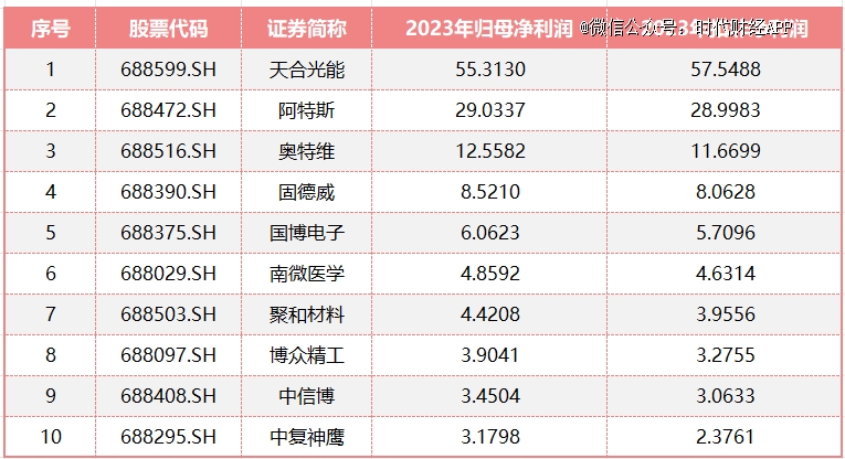 圖源:時代周報制圖-江蘇科創(chuàng)板上市公司2023年扣非凈利潤前十名