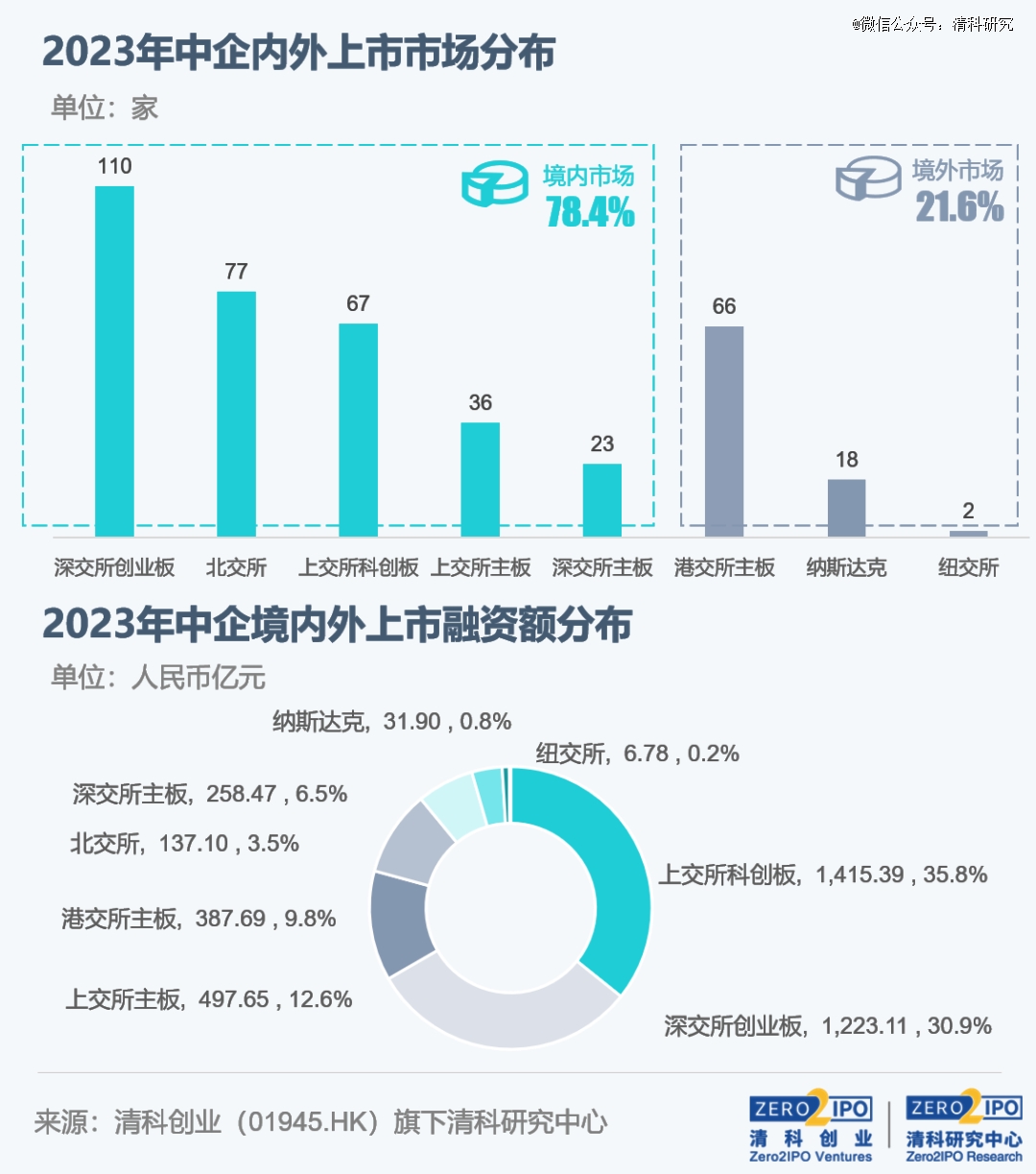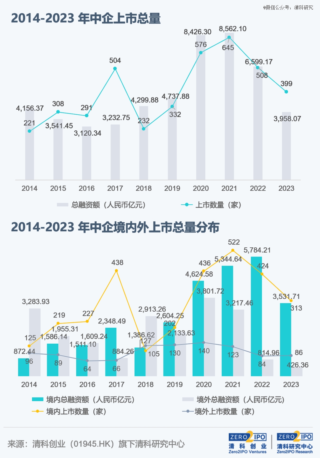 美股方面,2023年共20家中企赴美上市,首發(fā)融資額合計(jì)人民幣38.68億元,上市數(shù)量和總?cè)谫Y額均為去年的2倍。