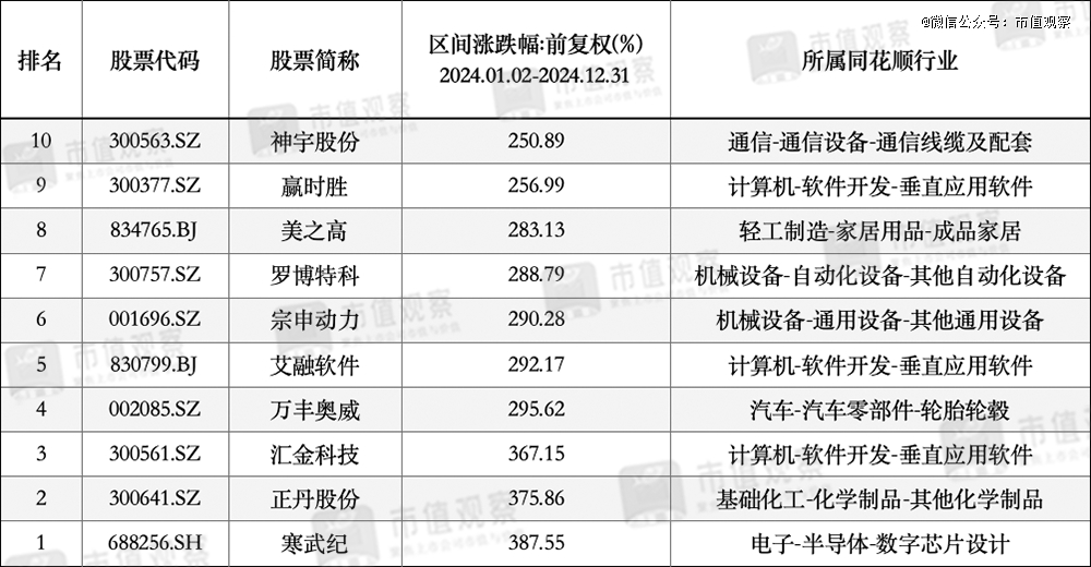 ▲2024年十大牛股(前復(fù)權(quán))