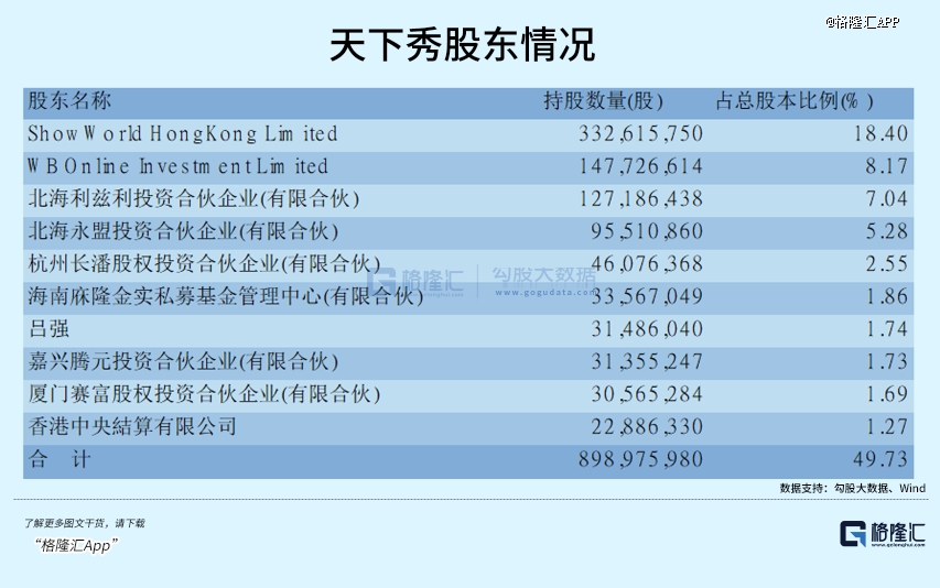 而微博則為第二大股東,持股8.17%,可以說是和天下秀高度綁定。