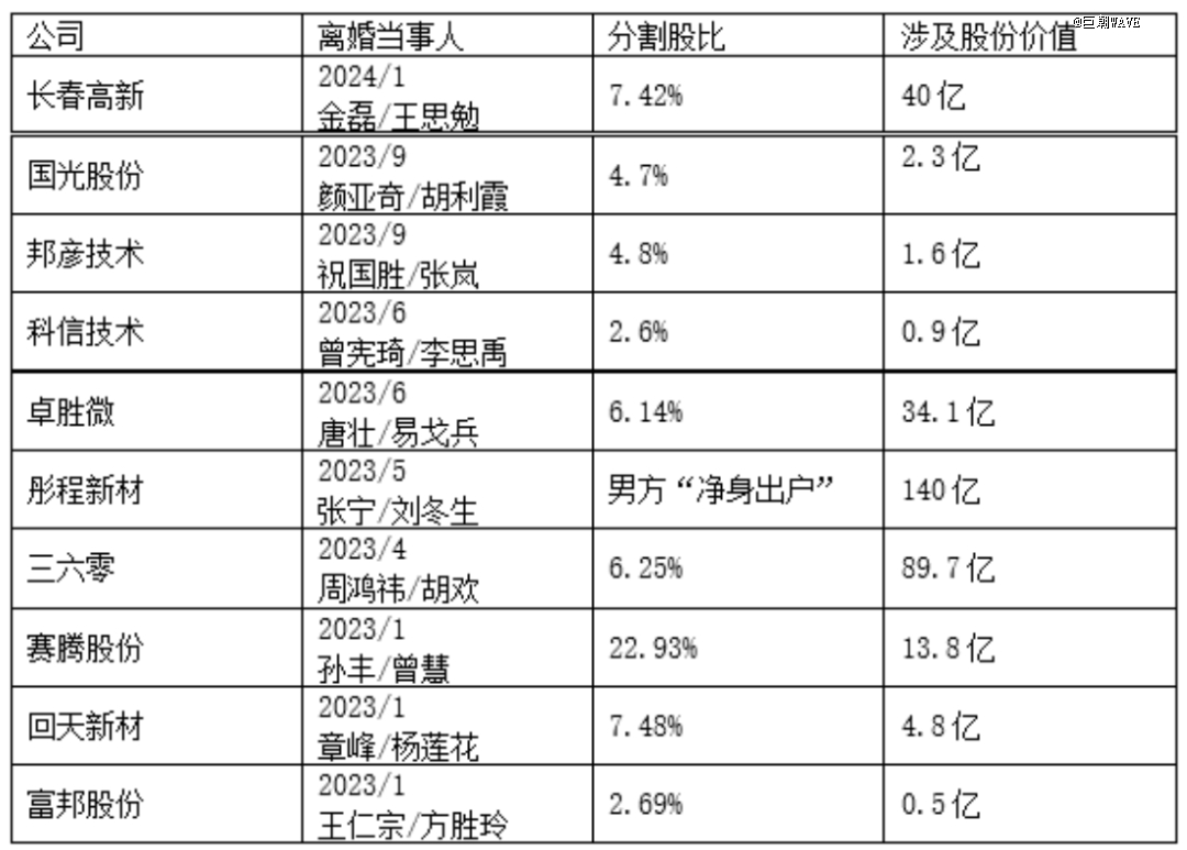 去年以來,上市公司大股東鬧離婚、分割巨額財產(chǎn)的事情真不算少,有彤程新材這樣公司控制權(quán)直接易主的,有賽騰股份這樣離婚夫妻股份平分、誰也不服誰的,還有360這樣不影響控制權(quán),但會影響股價的。