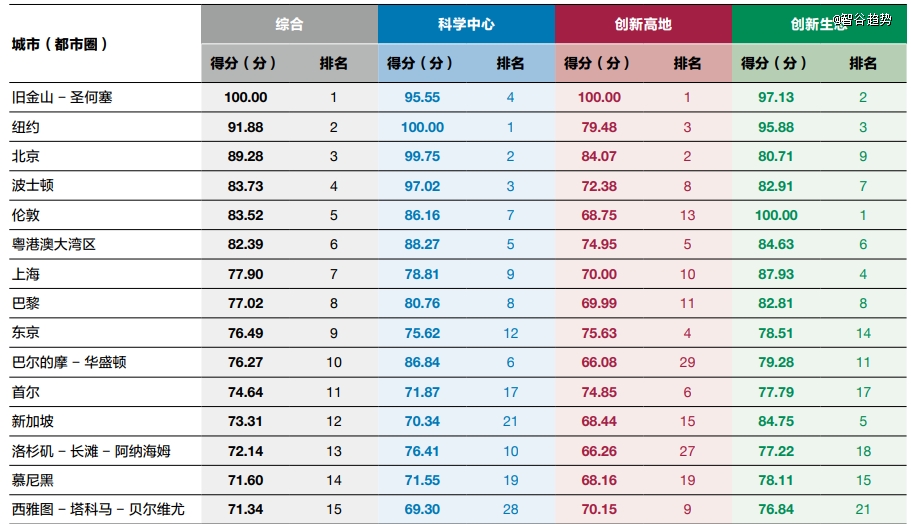 國(guó)際科技創(chuàng)新中心綜合排名前15名(2024)