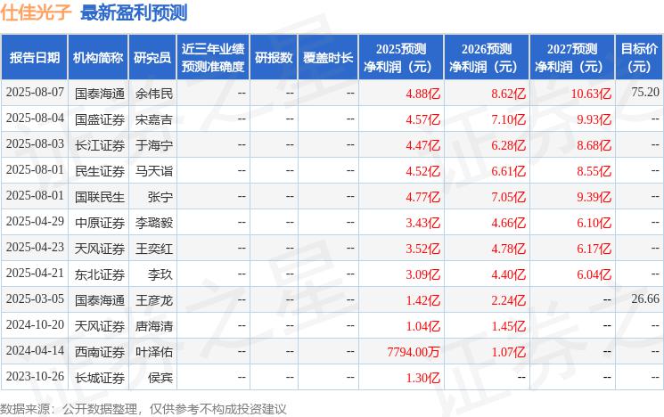 最新盈利預(yù)測(cè)明細(xì)如下: