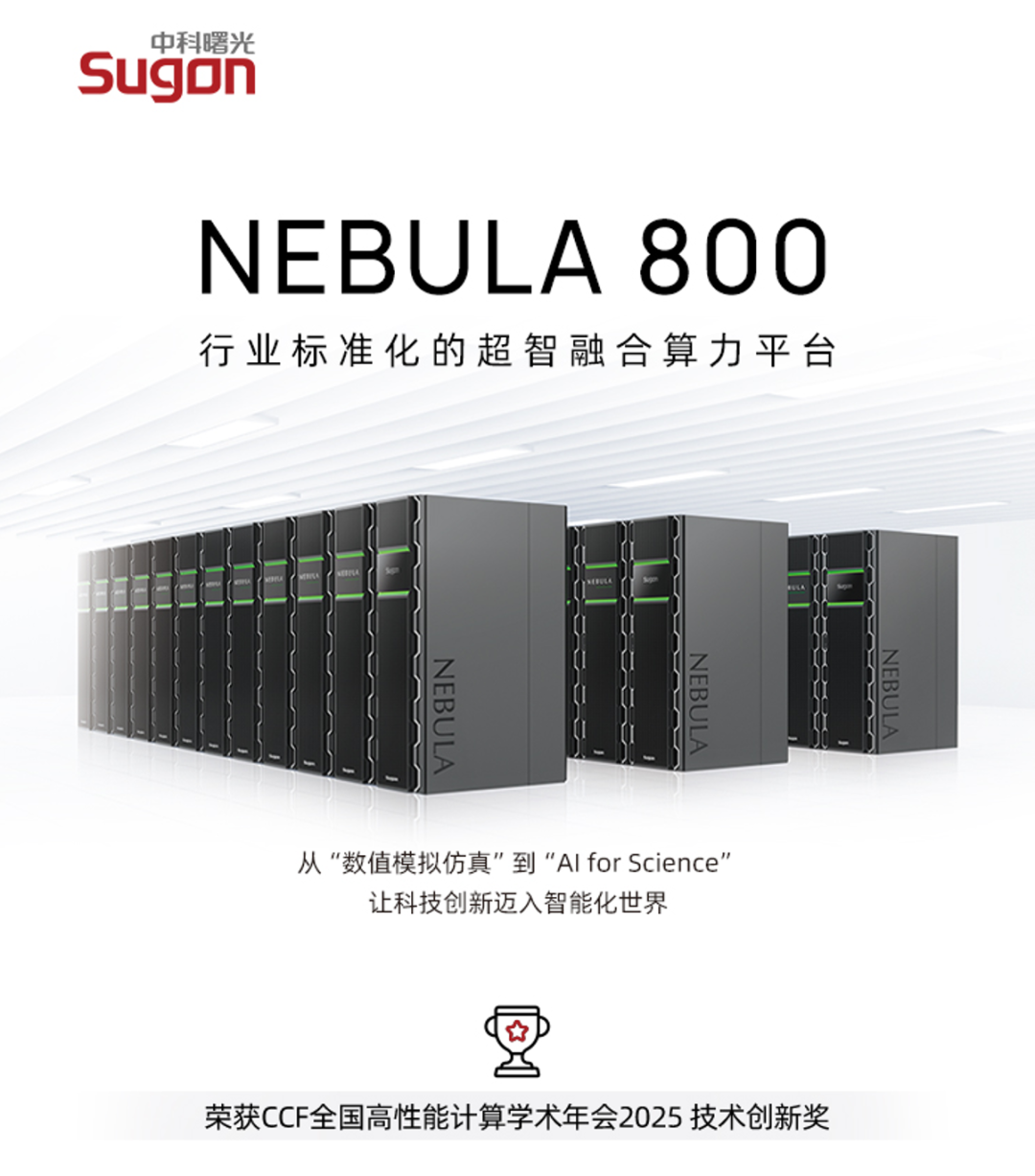 Nebula800專攻智能制造、生命科學(xué)、石油勘探、新材料等領(lǐng)域AI4S復(fù)雜計(jì)算任務(wù)場景,以一套系統(tǒng)打通超算、智算技術(shù)與生態(tài)壁壘,一平臺支持多精度、混精度計(jì)算,破解非融合系統(tǒng)計(jì)算精度不全、應(yīng)用普適性差、異構(gòu)資源管理調(diào)度困難等問題,填補(bǔ)了國內(nèi)相關(guān)產(chǎn)品空白。因其突破創(chuàng)新性,Nebula800榮獲2025CCF全國高性能計(jì)算學(xué)術(shù)大會技術(shù)創(chuàng)新獎。