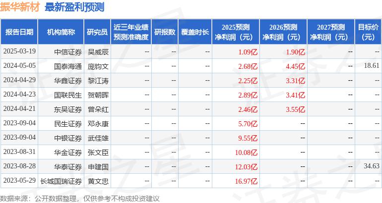 最新盈利預(yù)測(cè)明細(xì)如下: