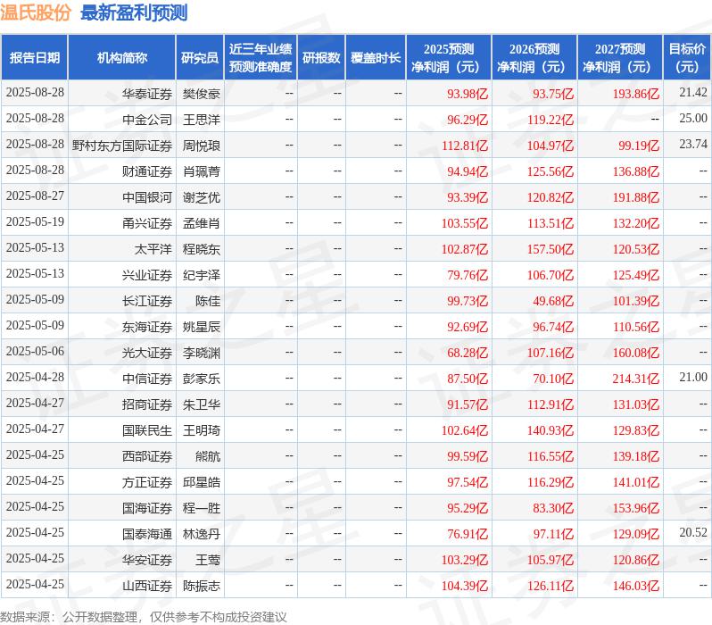 最新盈利預(yù)測(cè)明細(xì)如下: