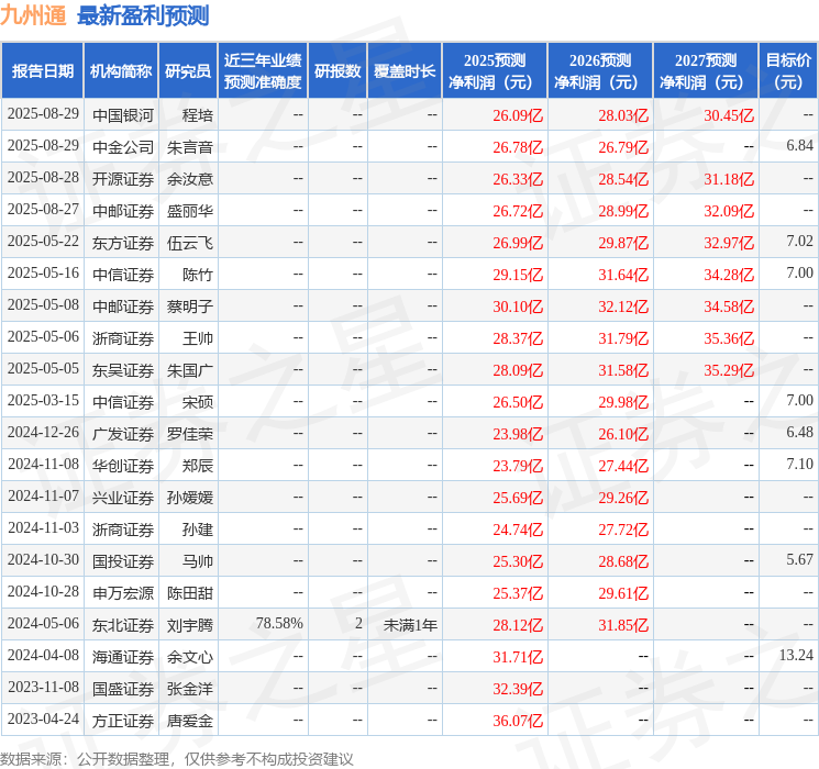 最新盈利預(yù)測明細(xì)如下:
