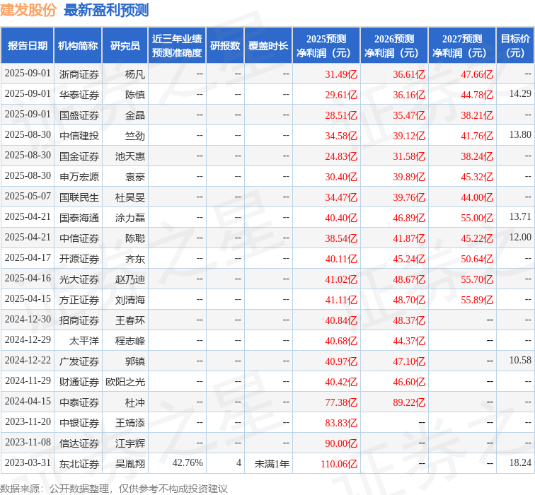 最新盈利預(yù)測(cè)明細(xì)如下: