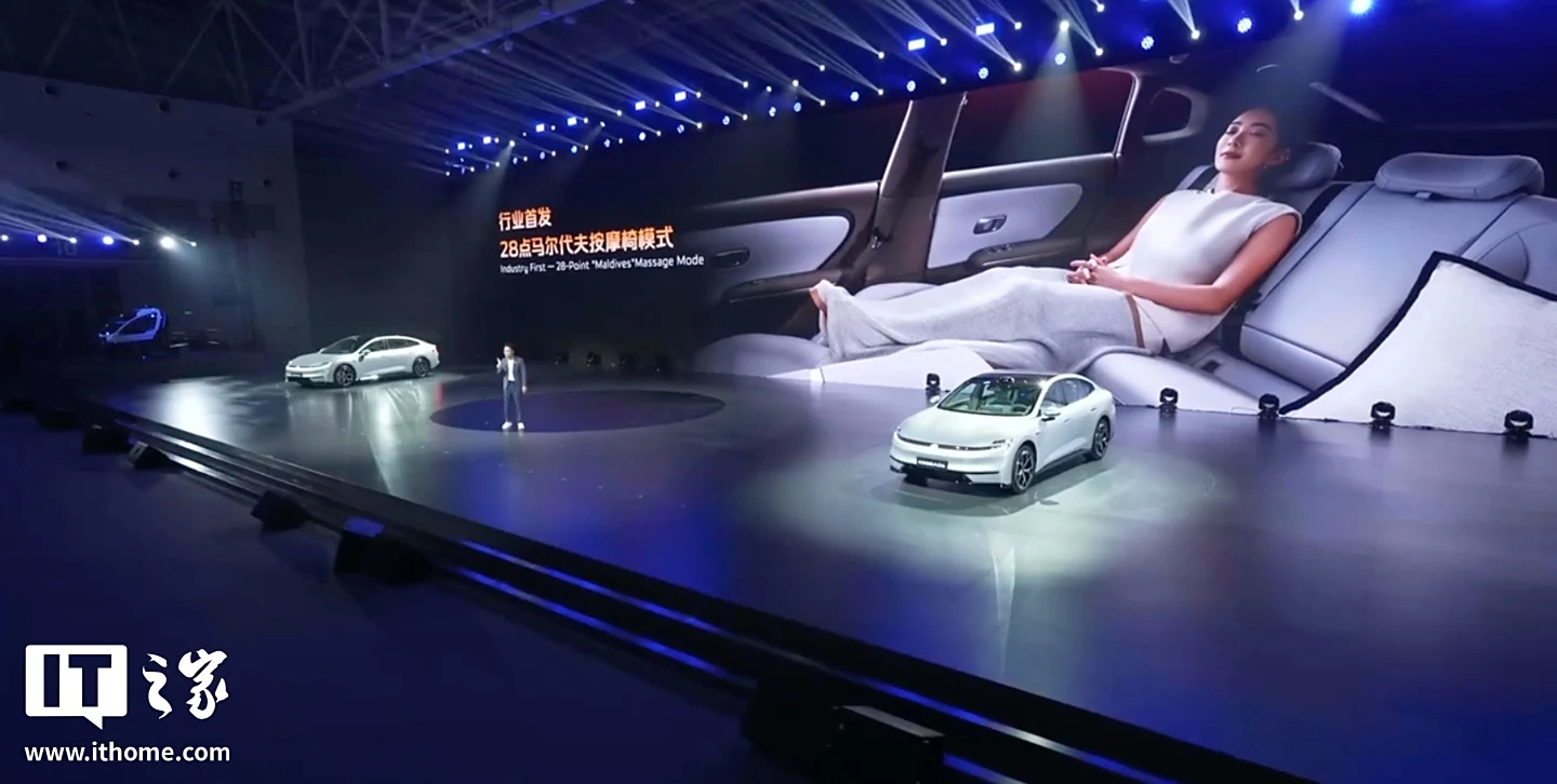 座艙方面,該車配備懸浮式中控屏和三輻式方向盤,提供 20 揚(yáng)聲器 NEVO Sound 天樞源聲音響系統(tǒng)、256 色懸浮氛圍燈,前排支持手機(jī)無線充電,后排座椅靠背支持無級電動調(diào)節(jié)、支持 28 點(diǎn)“馬爾代夫”全身指壓按摩,同時帶有 67W USB-C 充電接口和容積為 4.6 升的車載冷暖冰箱。