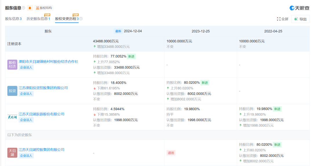 值得注意的是,參與其中的A股上市公司天目湖(603136.SH)早在2024年8月就發(fā)公告要為該項目增資近1.8億元,但至今仍未履行。而項目中的國資大股東早在10個月前就已大幅撤出,持股從超80%將至約18%。