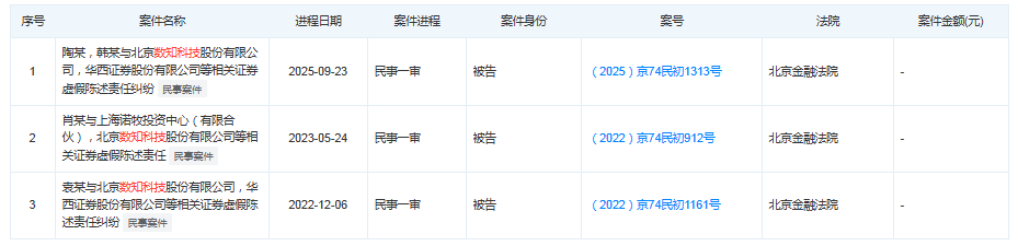 日前,據(jù)天眼查APP,華西證券(002926)新增一條司法案件,華西證券因數(shù)知科技證券虛假陳述一案,被投資者訴至法庭。9月23日,北京金融法院開庭審理了投資者訴數(shù)知科技及華西證券等機(jī)構(gòu)的證券虛假陳述責(zé)任糾紛案。