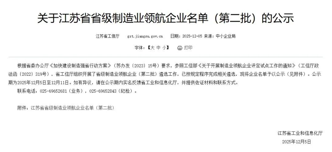 省級(jí)制造業(yè)領(lǐng)航企業(yè),是江蘇省構(gòu)建“專(zhuān)精特新—單項(xiàng)冠軍—領(lǐng)航企業(yè)”梯度培育體系中的頂尖層級(jí),入選企業(yè)在技術(shù)、標(biāo)準(zhǔn)、市場(chǎng)等方面擁有強(qiáng)大話語(yǔ)權(quán)與影響力,能夠有效整合產(chǎn)業(yè)鏈,帶動(dòng)行業(yè)發(fā)展。